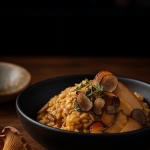 Luxurious mushroom risotto made with Aquarello rice, chanterelles, shiitakes, Pecorino, and finished with fresh black truffle. A creamy, elegant Italian classic.