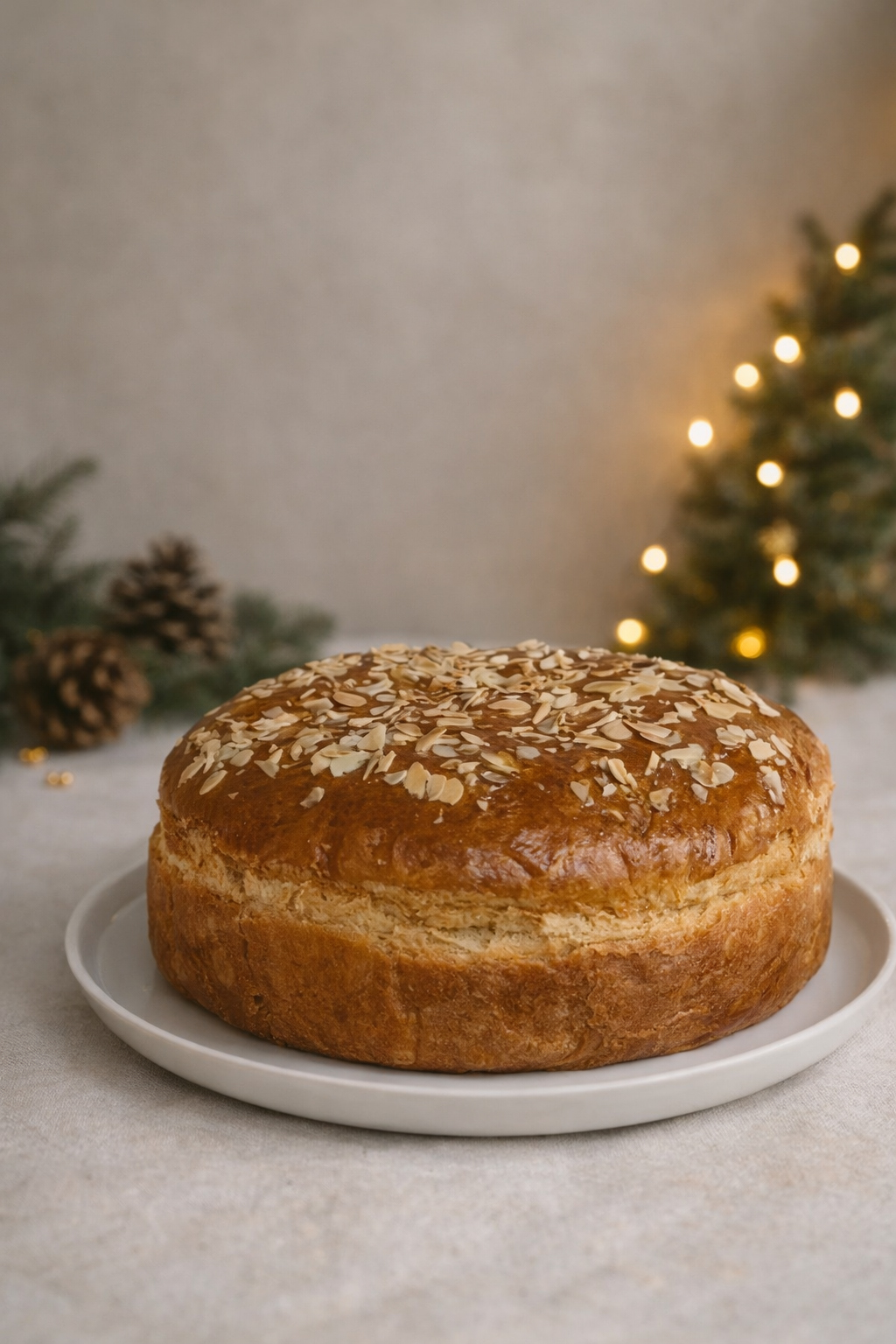 - Βασιλόπιτα σε στυλ τσουρέκι, πλούσια και εορταστική, με ελαστική ψίχα και άρωμα βουτύρου, που θυμίζει ζύμη γιορτής.
